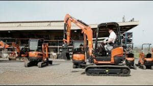 - Kubota U17-3α : Mini-pelle 1,7T, moteur D902, ultra-compacte sans déport arrière, largeur min. 990 mm. Idéale pour les accès difficiles et petits chantiers.